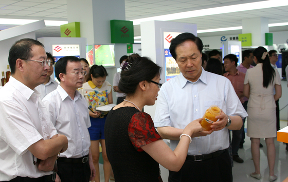 7月15日,省委書記張寶順在合肥市委書記吳存榮、市長(zhǎng)張慶軍和省商務(wù)廳廳長(zhǎng)曹勇、省國(guó)貿(mào)集團(tuán)董事長(zhǎng)范陽等領(lǐng)導(dǎo)的陪同下蒞臨安糧實(shí)業(yè)外貿(mào)創(chuàng)意研發(fā)公共服務(wù)平臺(tái)綜合展廳視察。