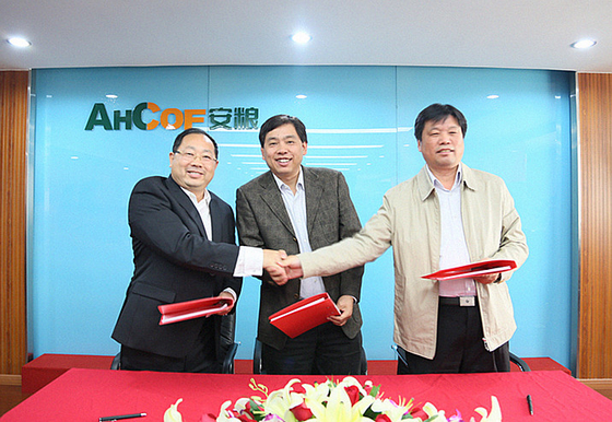 簽約儀式上,南陽二機集團公司董事長楊漢立,美國TGS總經理殷紅兵,安糧國際董事長朱亮代表三方簽訂了協議。安糧控股副總裁葛志毅,南陽二機常務副總經理尹永晶、副總經理宋剛等領導到會,并見證了簽約儀式。