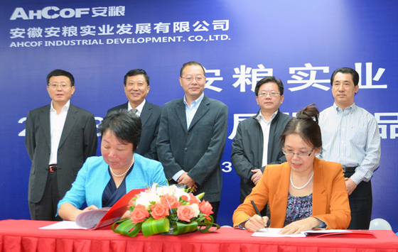 本次推介會包括新品推介和合作簽約兩個主題。在活動現(xiàn)場,安糧實業(yè)石紅董事長分別與合巢經(jīng)濟開發(fā)區(qū)、合工大農(nóng)產(chǎn)品加工研究院、省農(nóng)科院農(nóng)產(chǎn)品加工所以及合肥天孚君順商貿(mào)有限公司代表簽訂了《安糧巢湖食品工業(yè)園投資合作協(xié)議》、《農(nóng)產(chǎn)品研發(fā)與生產(chǎn)戰(zhàn)略合作協(xié)議》和《“田田屋”產(chǎn)品經(jīng)銷協(xié)議》,為安糧實業(yè)產(chǎn)品研發(fā)和加工銷售提供更為廣闊的平臺。
