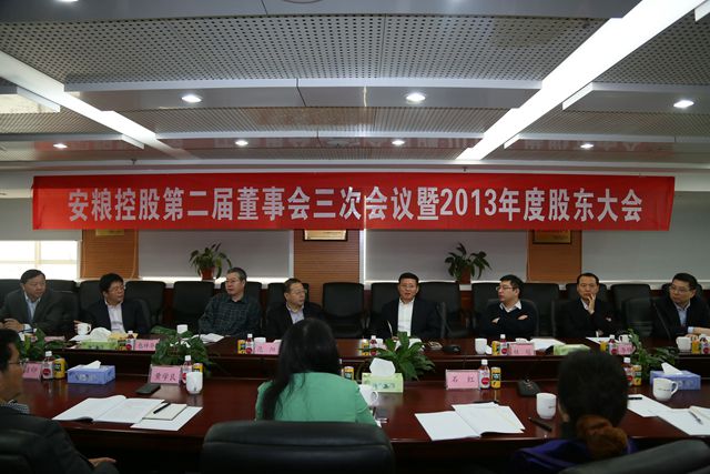 4月13日,公司召開(kāi)安糧控股第二屆董事會(huì)第三次會(huì)議暨2013年度股東大會(huì)。公司董事會(huì)成員包祥華、桂冠、李錦鐸、方宗友、曹訓(xùn)立、宋恩君參加會(huì)議。監(jiān)事會(huì)成員陳素萍、黃學(xué)良、石紅及經(jīng)營(yíng)層成員儲(chǔ)潔印、潘冬生、張來(lái)往列席會(huì)議。國(guó)貿(mào)集團(tuán)范陽(yáng)董事長(zhǎng)應(yīng)邀出席會(huì)議。會(huì)議由董事長(zhǎng)主持。