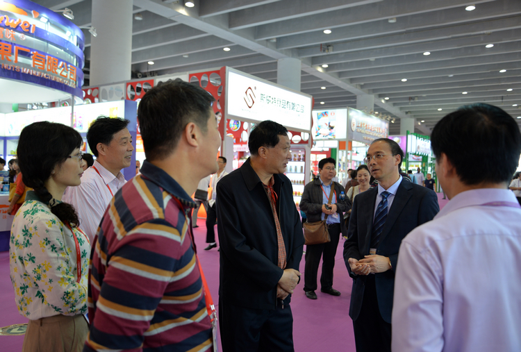 省商務廳張箭廳長(左一)巡視公司展位