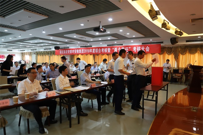會議最后,參會人員根據現場述職和書面述職,從企業黨建、經營業績、團結協作、作風形象及落實黨風廉政建設“兩個責任”等多個維度對安糧集團(控股)領導班子進行民主測評及評議,并進行了現場投票。
