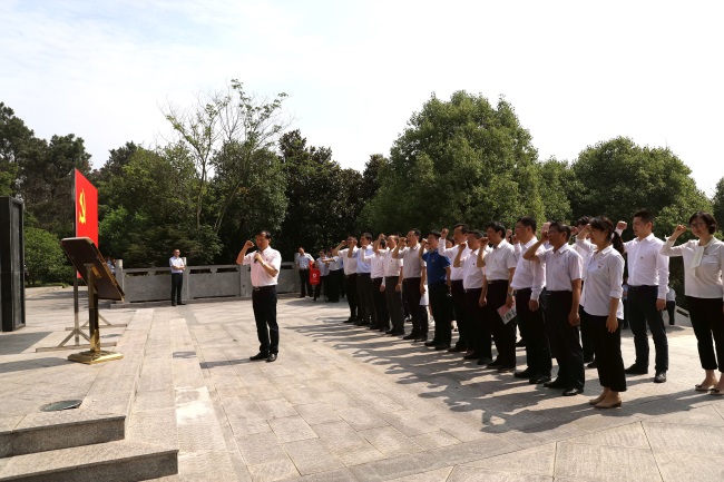 堅守初心,勇擔使命。6月28日上午,安糧集團黨委組織集團黨委班子及系統各基層黨支部支委以上干部共30余人赴肥東縣茶壺山革命烈士陵園、瑤崗渡江戰役總前委舊址,舉行緬懷革命先烈、重溫入黨誓詞、接受革命傳統教育活動,并現場召開“不忘初心、牢記使命”主題教育動員會,以革命傳統教育開啟安糧集團主題教育第一課。
