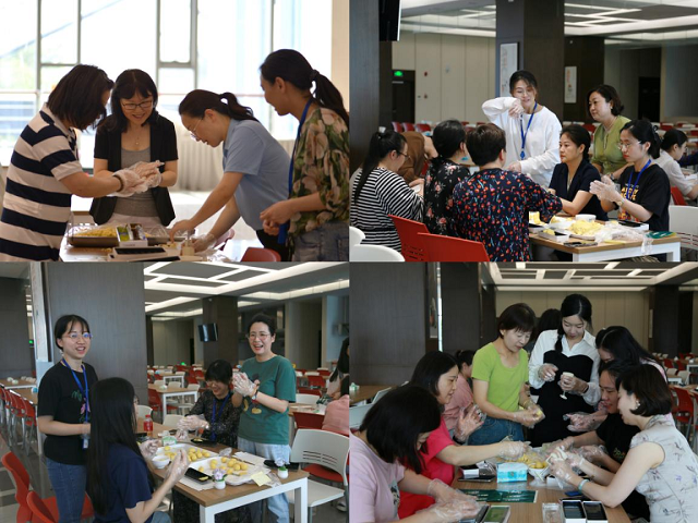 接著進入了大家最躍躍欲試的環節——DIY綠豆糕。同事們圍坐一堂,有的揉面,有的裝模,有的擺盤,有的包裝,大家一邊認真制作,一邊相互交流。在大家精心制作下,一個個、一盒盒香甜美味、花色各異的綠豆糕呈現在眼前。活動現場其樂融融,洋溢著和諧、平安與幸福的氛圍,大家一起感受親手制作綠豆糕帶來的歡樂。
