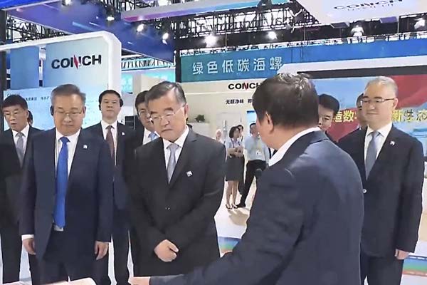 開幕式后,全國人大常委會副委員長張慶偉、省委書記梁言順、省長王清憲一行巡館,查看了海螺集團展館和海螺建筑光伏大道,聽取了海螺加快產業轉型升級,推動企業高質量發展的情況介紹。
