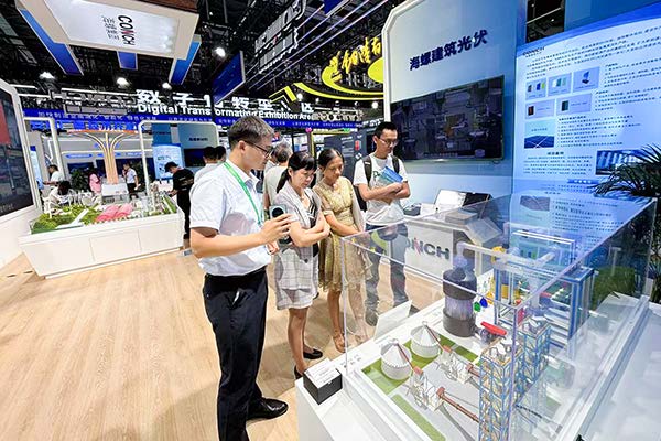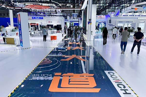 海螺集團展館圍繞產業轉型升級主題,聚集海螺新能源、新材料、數字經濟產業鏈,通過沙盤展示、實物模型、視頻演播、互動體驗等多種形式,集中展示海螺實施創新驅動,推動產業高端化、智能化、綠色化發展的豐碩成果。海螺智能質量控制系統、供銷物流管控系統、袋裝水泥機器人自動裝車系統、安徽省外貿綜合服務平臺、安天智采招標采購電子交易平臺、全過程數字管理平臺,以及海螺新材全屋定制、海螺建筑光伏、海螺全釩液流儲能、海螺科創外加劑與工業制劑等悉數參展。